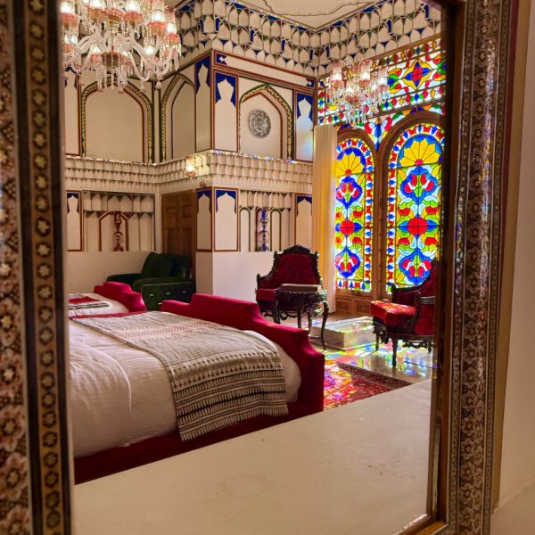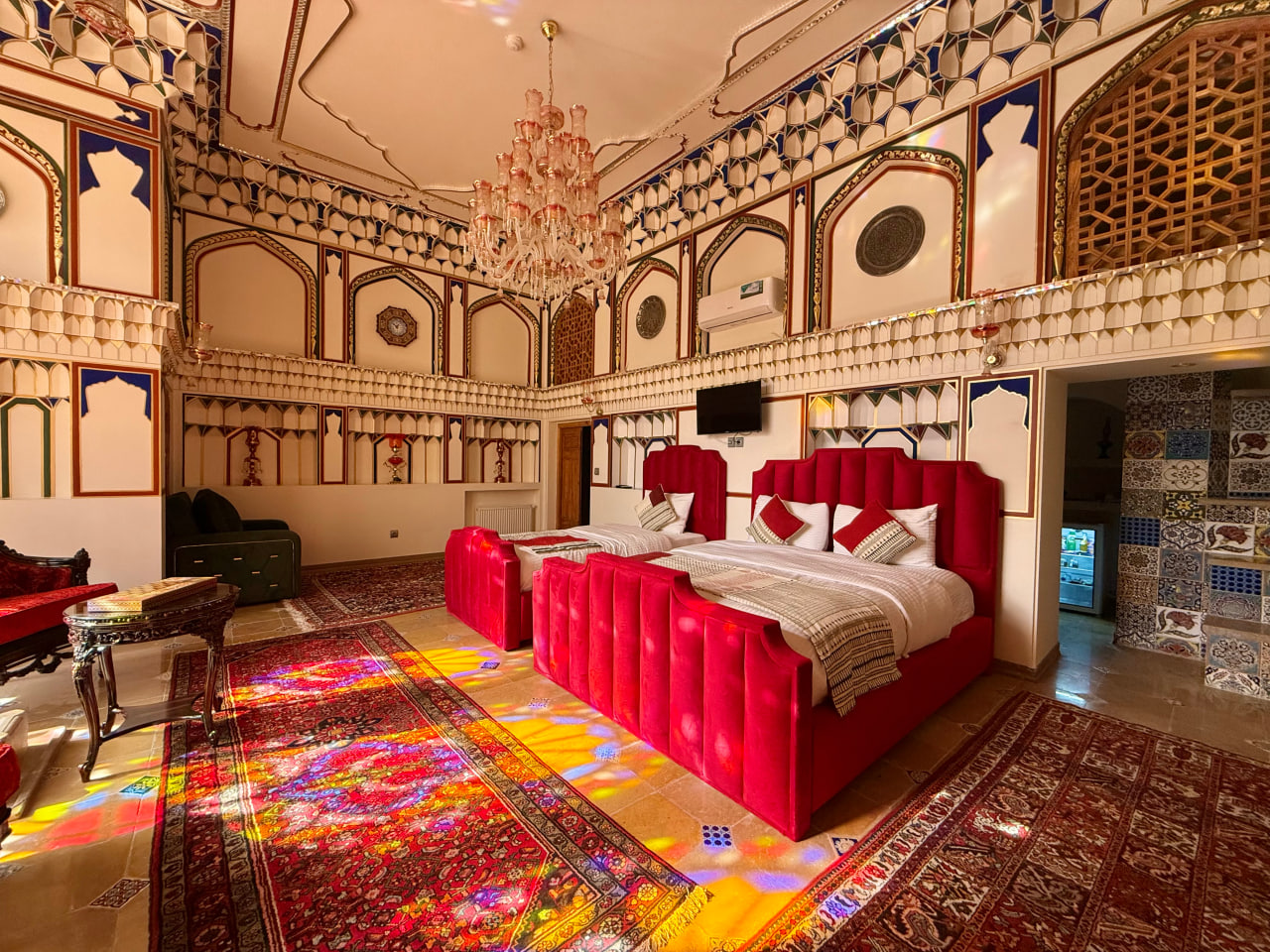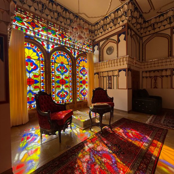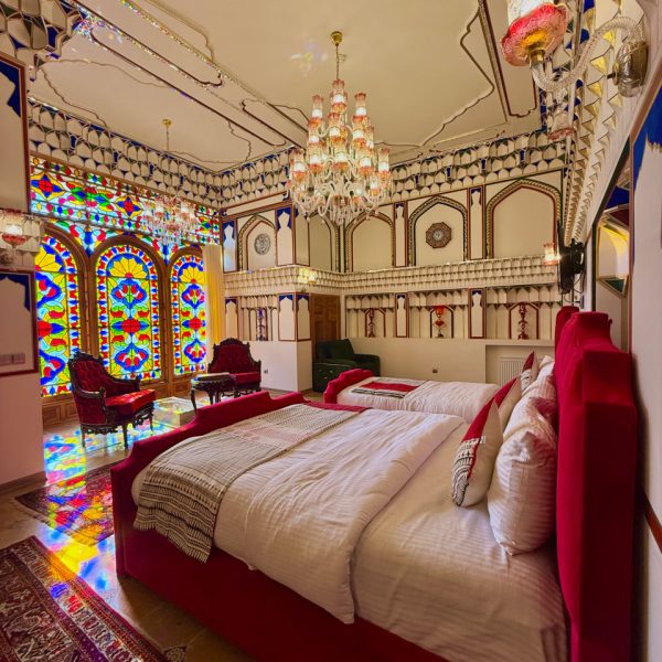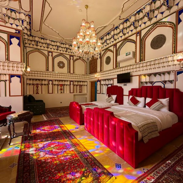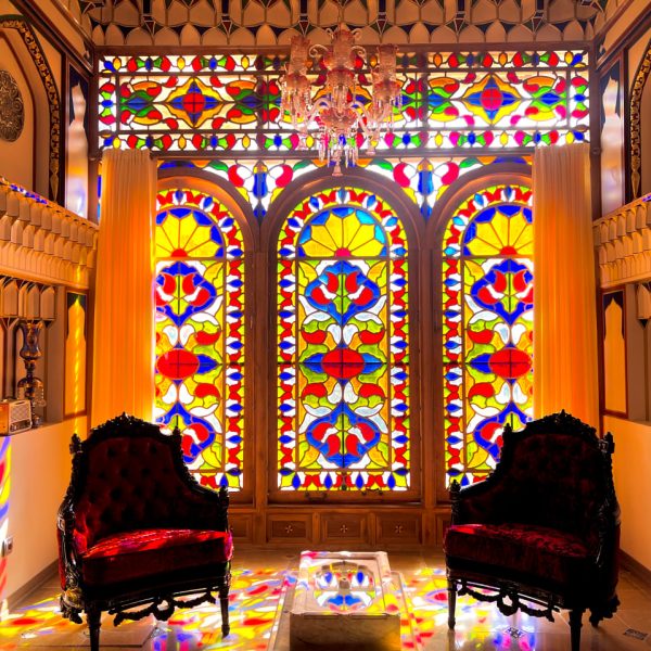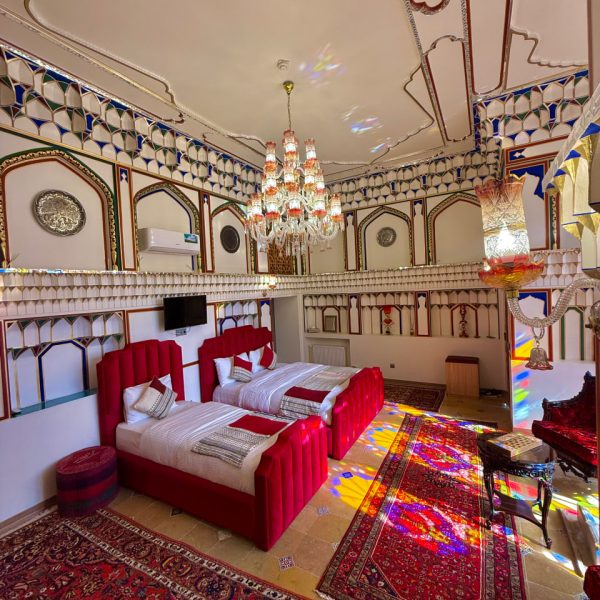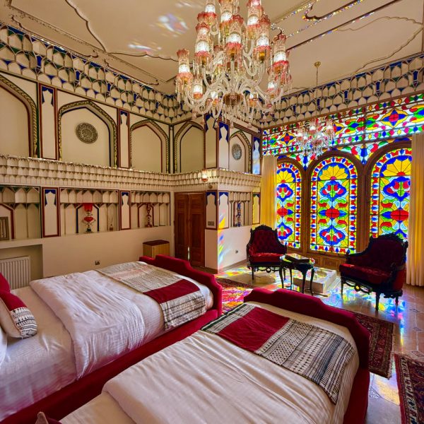 درهای ارسی و شیشههای رنگی، با عبور نور آفتاب، فضایی رویایی و رنگین میآفرینند که حال و هوای شاهنشینهای اصیل ایرانی را زنده میکند. طراحی سنتی در کنار فضای دلنشین و آرامشبخش، اقامتی متفاوت و بهیادماندنی را رقم میزند.